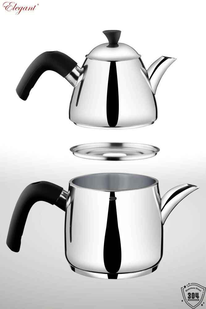 Elit serisi mini boy çaydanlık takımı, kompakt ölçüsüyle az kişilik kullanım için idealdir. 304 paslanmaz çelik gövdesi dayanıklı ve uzun ömürlüdür. Siyah bakalit kulpları sayesinde elde güvenli ve konforlu bir tutuş sağlar. Takım; 1,5 L alt suluk ve 0,75 L üst demlikten oluşur. İndüksiyon uyumlu tabanı sayesinde farklı ocak tiplerinde güvenle kullanılabilir. Ürün Türkiye menşeli olup 2 yıl garanti ile sunulmaktadır.