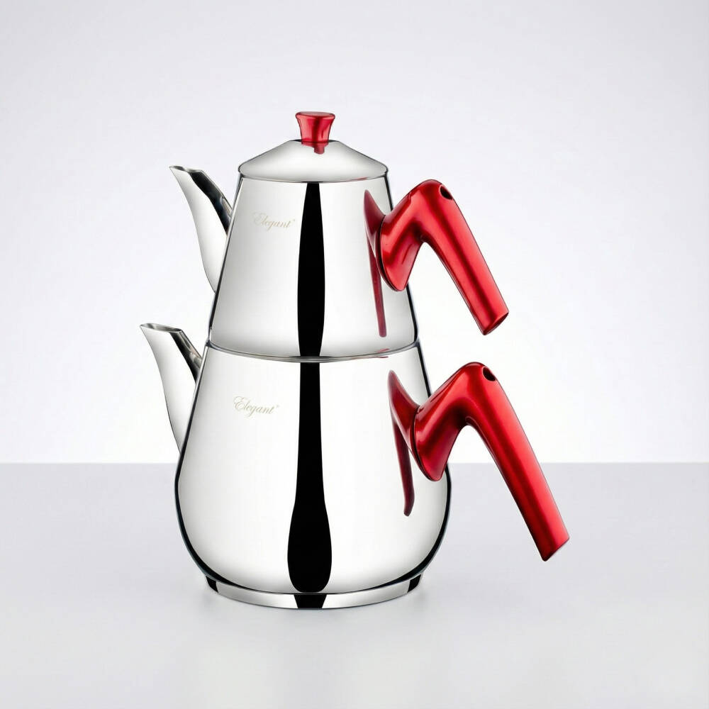 Topaç serisi orta boy çaydanlık takımı, yuvarlak ve dengeli formu ile mutfakta şık bir görünüm sunar. 304 paslanmaz çelik gövdesi dayanıklıdır. Kırmızı bakalit kulpları sayesinde elde güvenli ve konforlu bir tutuş sağlar. Takım; 2,5 L alt suluk ve 1 L üst demlikten oluşur. İndüksiyon uyumlu tabanı sayesinde farklı ocak tiplerinde güvenle kullanılabilir. Ürün Türkiye menşeli olup 2 yıl garanti ile sunulmaktadır.